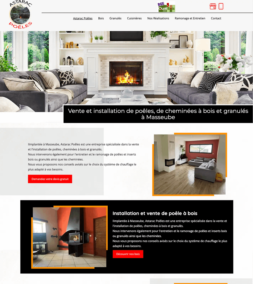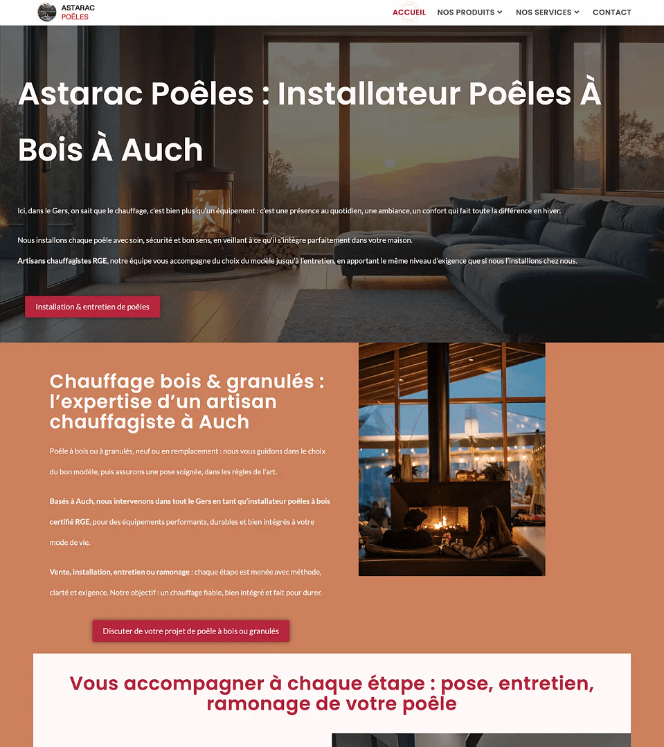 Cet artisan chauffagiste basé à Auch, spécialisé dans l’installation de poêles à bois, inserts et cheminées, m’a contactée pour refondre son site vitrine de chauffagiste dans le Gers.